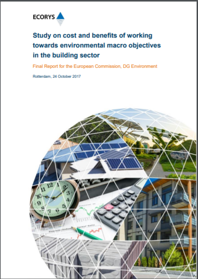 Study on cost and benefits of working towards environmental macro objectives in the building sector; Final Report for the European Commission, DG Environment, Rotterdam, 24 October 2017. The European Commission's 2014 Communication on Resource Efficiency Opportunities in the Building Sector identifies the need for a common EU approach to assess the environmental performance of buildings. This study explores the possibility to implement mature and easy-to-implement actions for each of six macro objectives relating to the environment. Read the report here